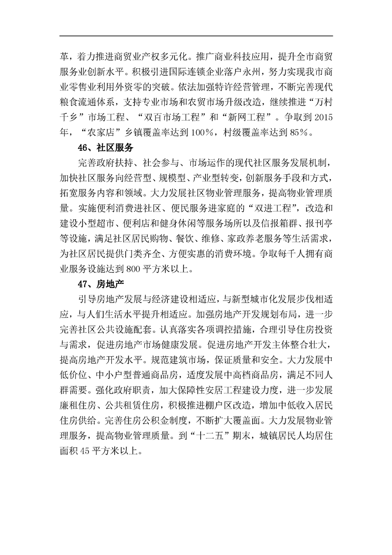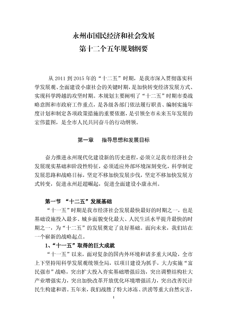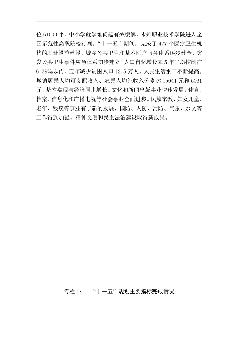 永州市國民經濟和社會發展第十二個五年規劃綱要