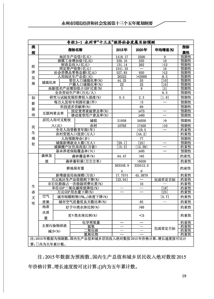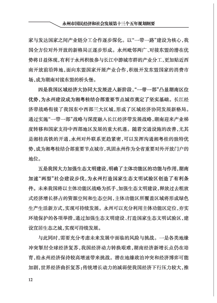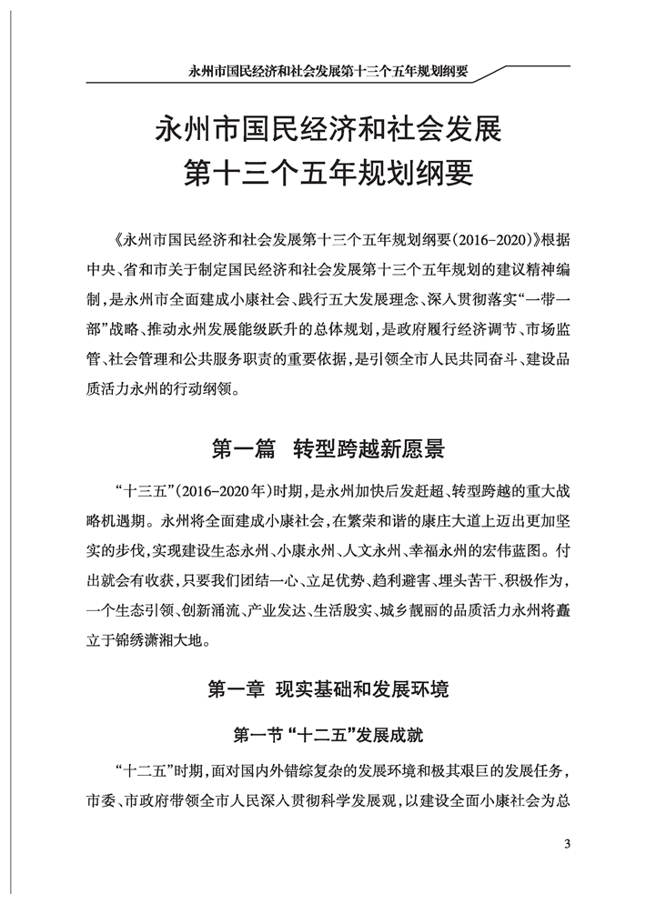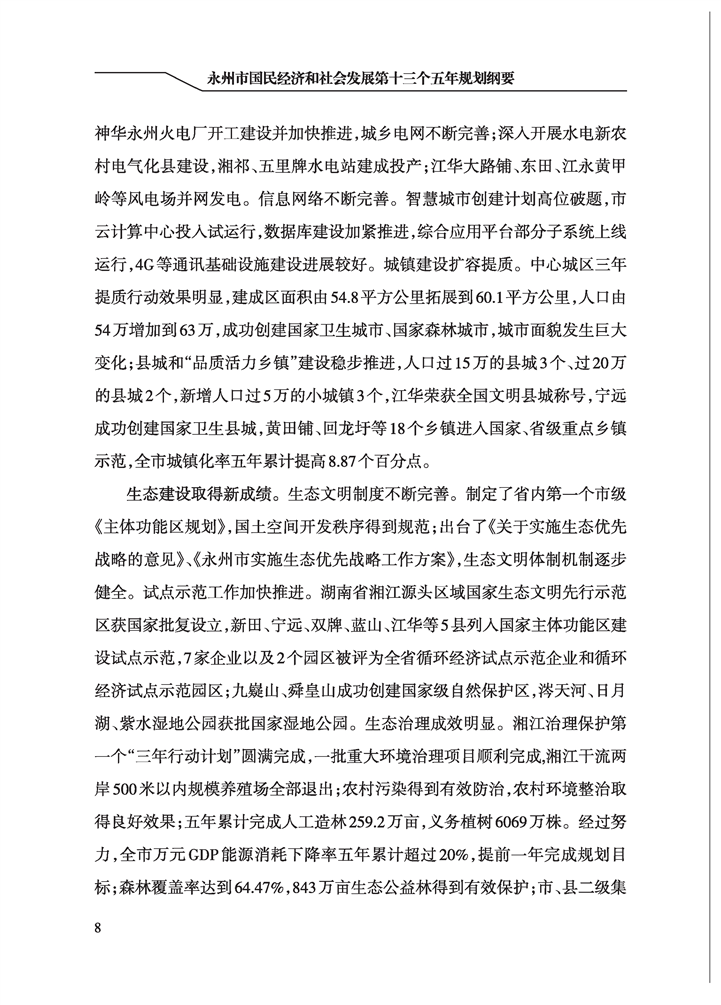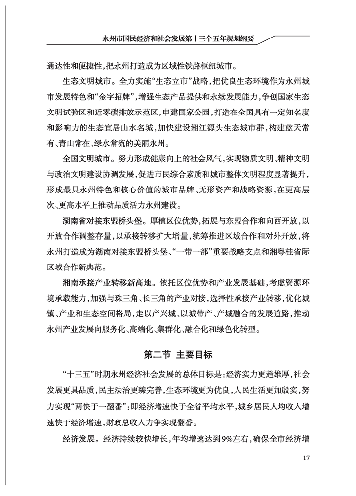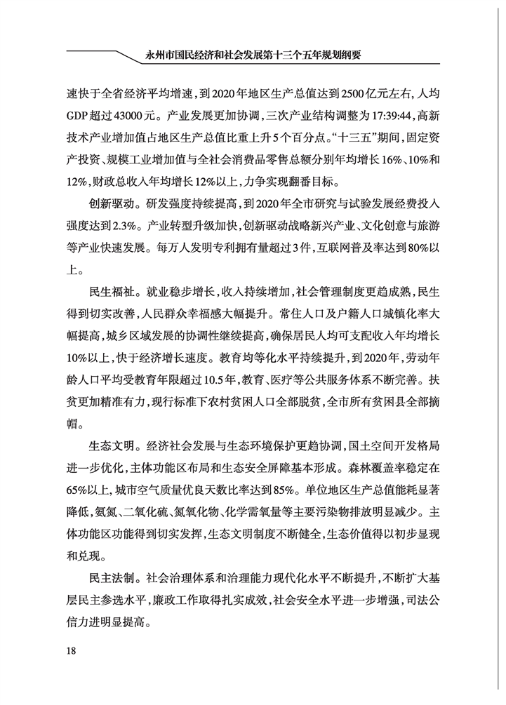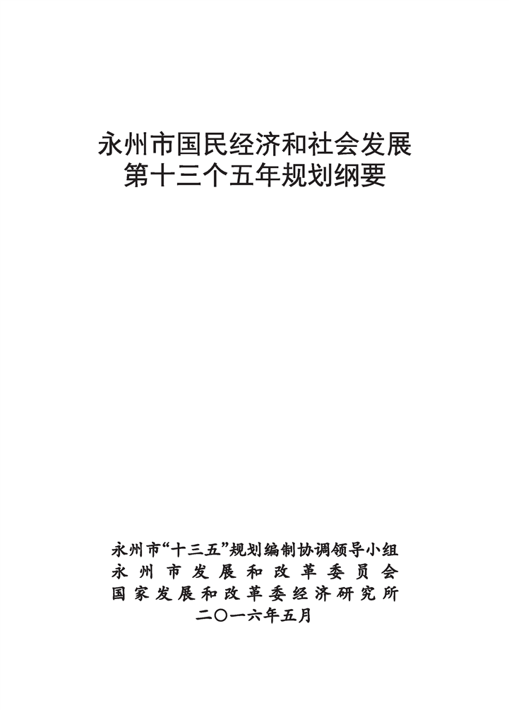 永州市國民經(jīng)濟和社會發(fā)展第十三個五年規(guī)劃綱要