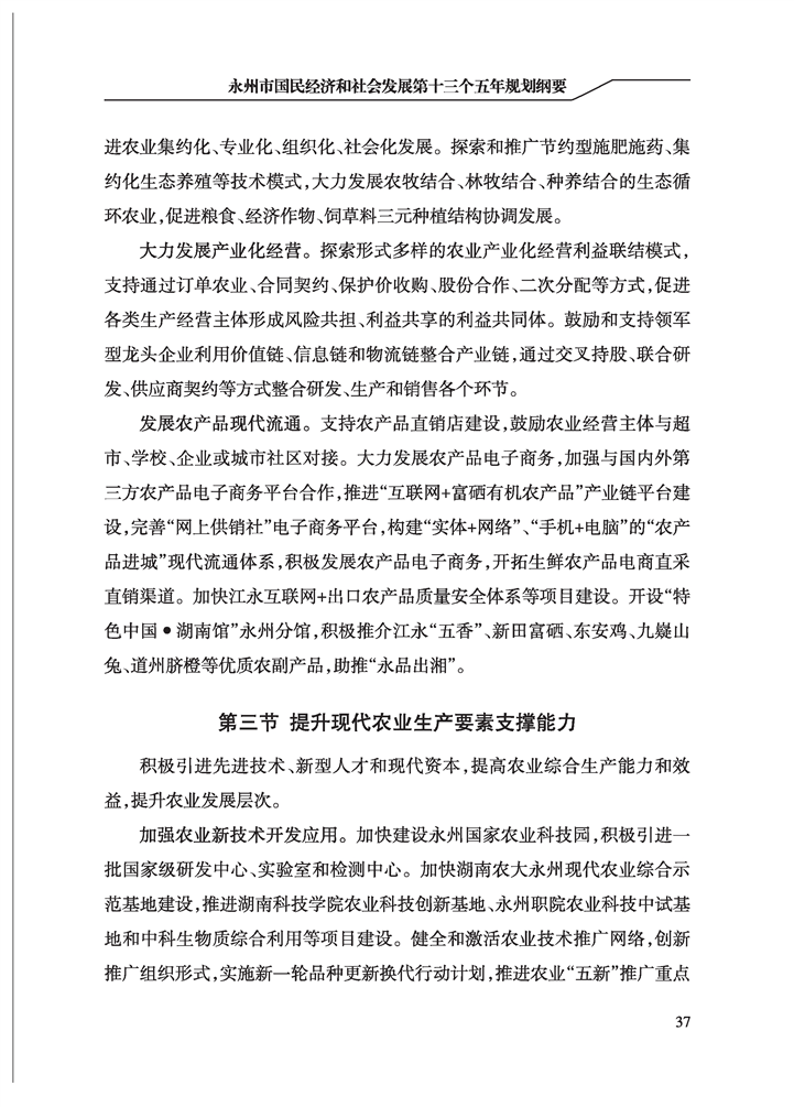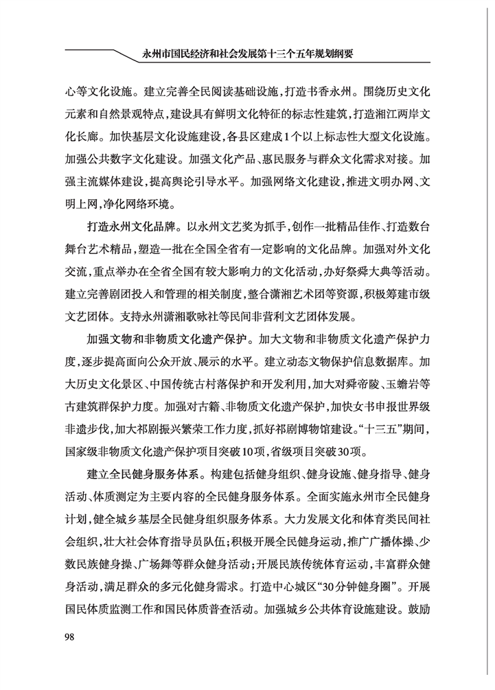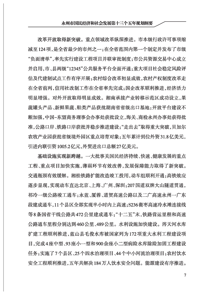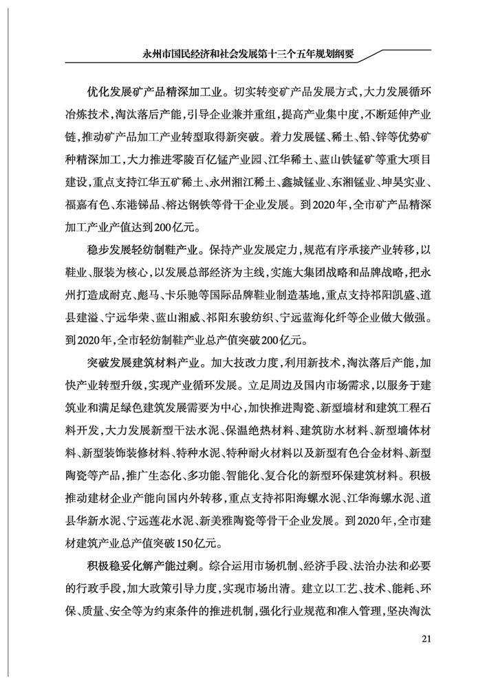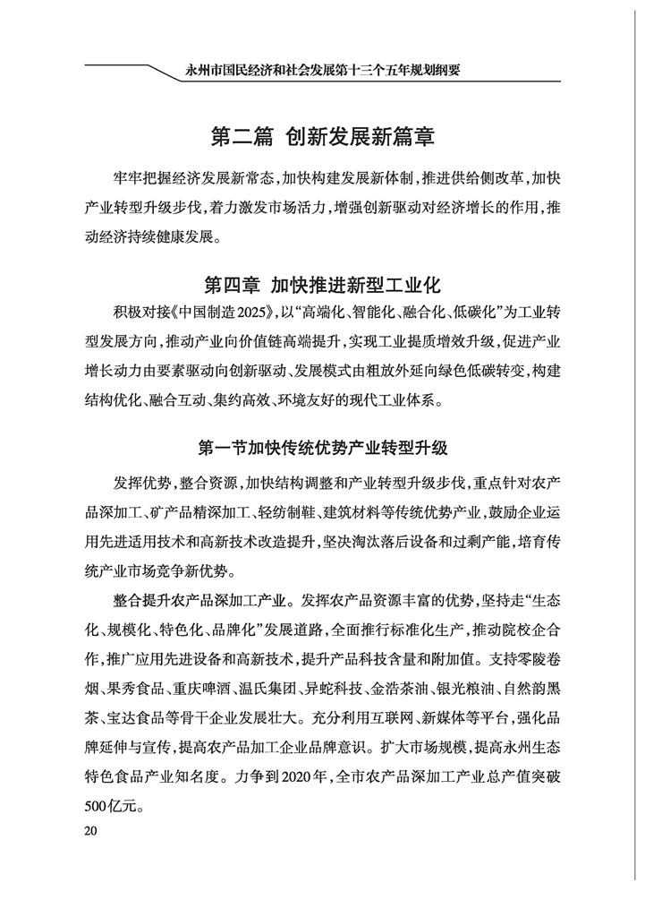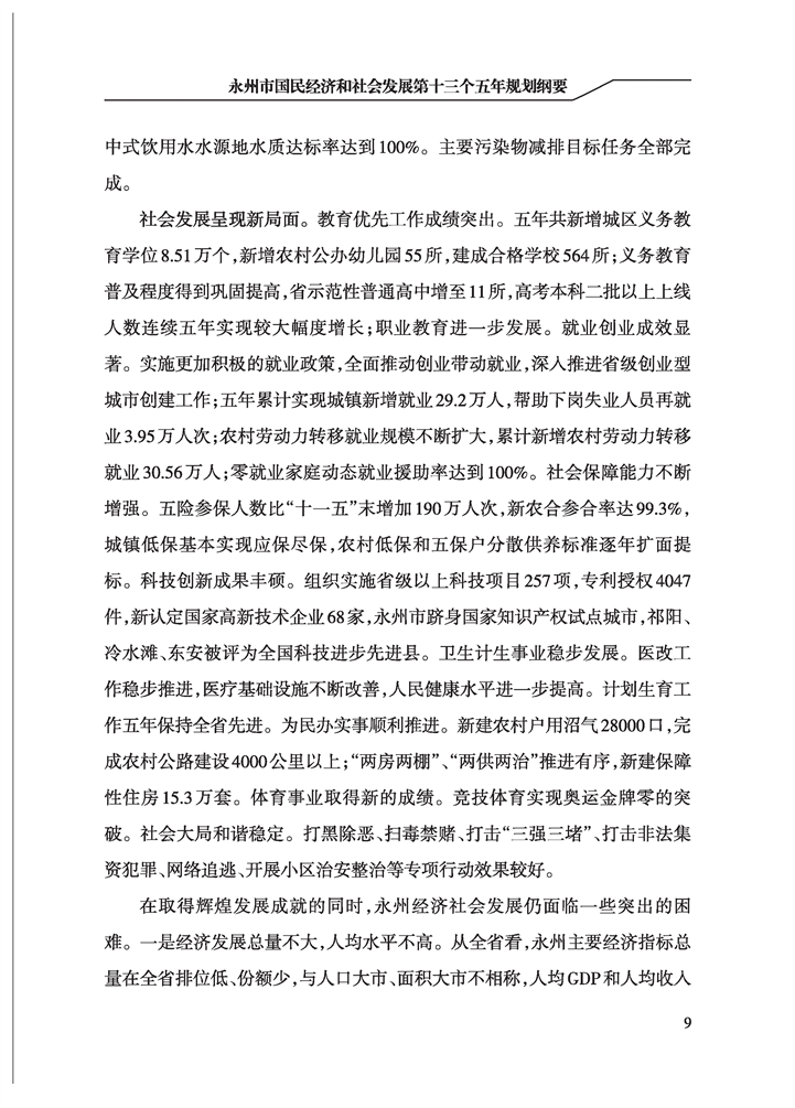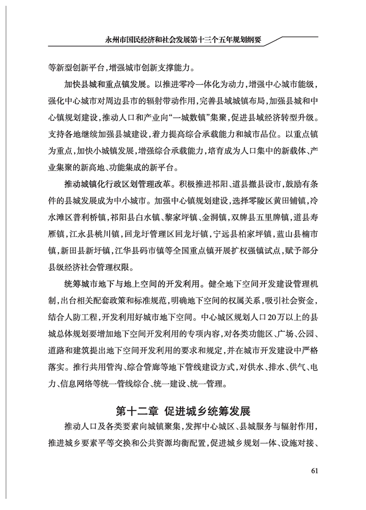 永州市國民經(jīng)濟和社會發(fā)展第十三個五年規(guī)劃綱要