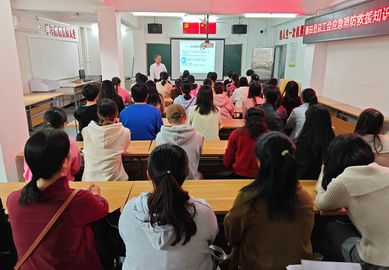 11月9日,新田縣總工會與政務公開工作人員在新田縣風光職業技術學院開展應急消防救援知識職工教育宣傳活動。