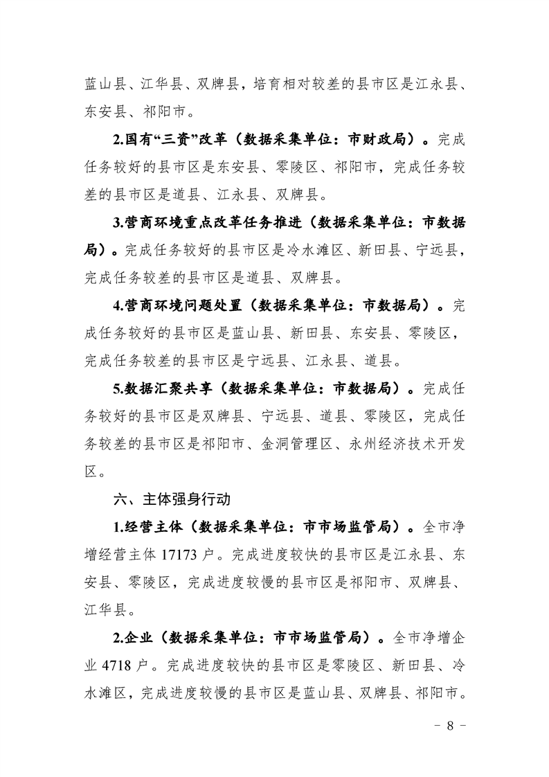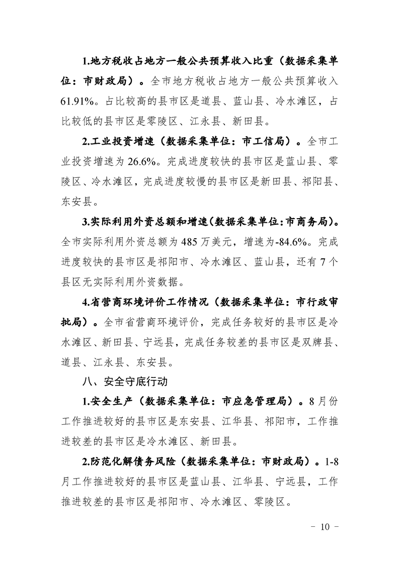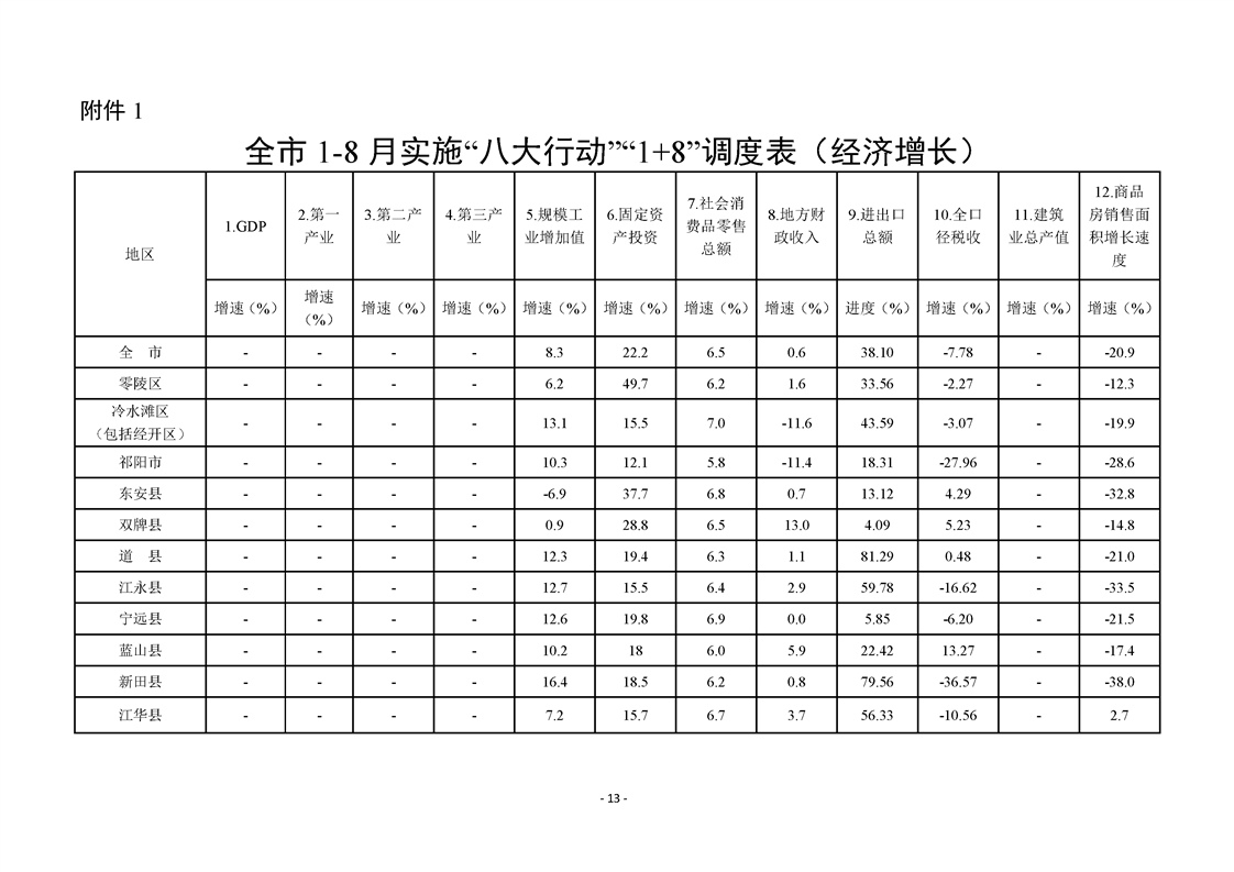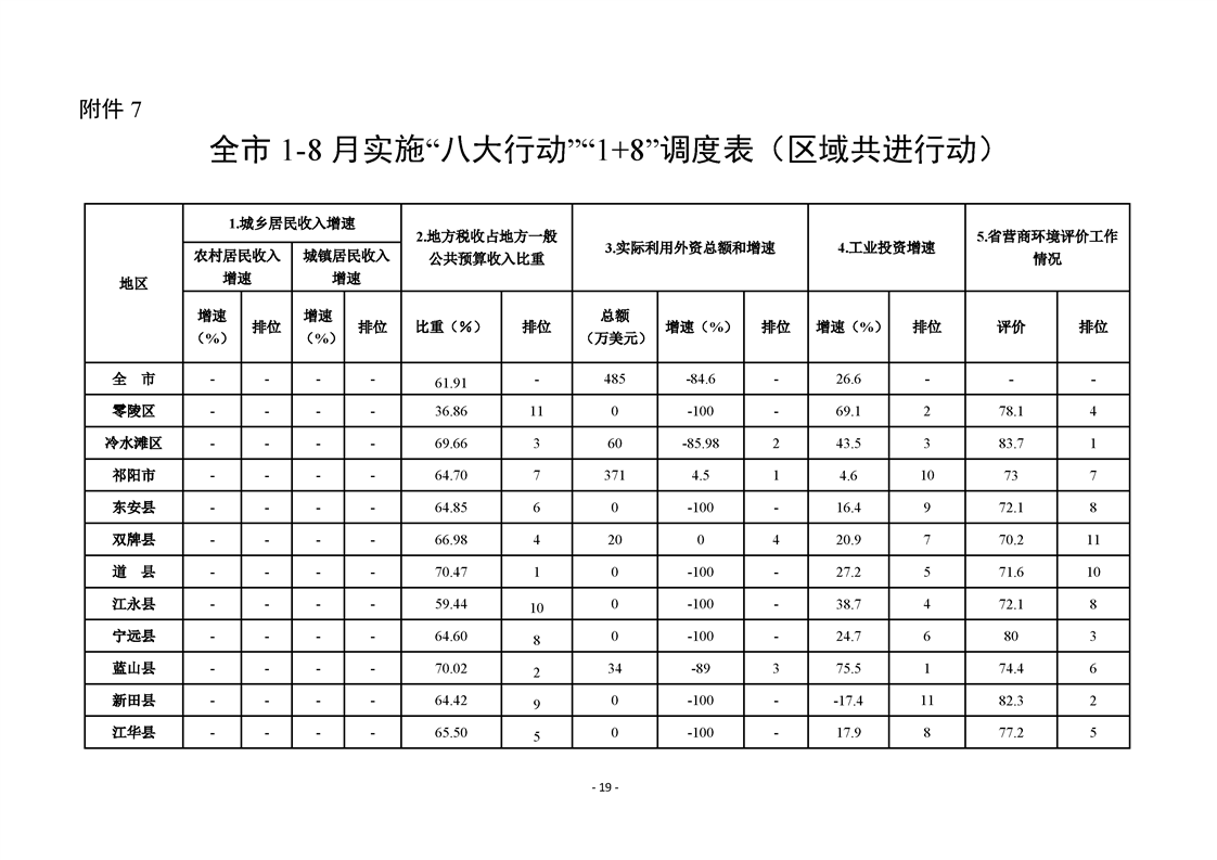 永州市實施“八大行動”工作專報(第21期)(1-8月通報)