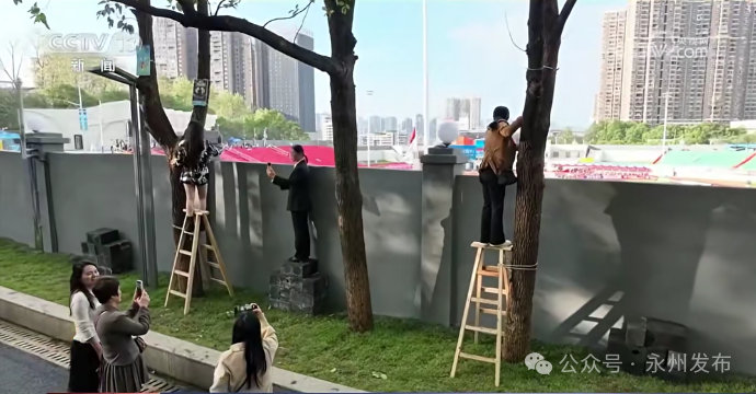 永州市足球協(xié)會秘書長 黃楚儒:“這個蛇主要是之前柳宗元《捕蛇者說》,永州之野產(chǎn)異蛇,所以說永州人對蛇有比較深的了解,或者說是情感,我們也是開個玩笑。”無論如何玩梗,安全還是要得到保障。為此,管理部門提前清理樹木枯枝、架好了人字梯、并且準備好了安全繩。