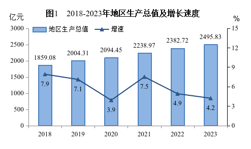 根據(jù)地區(qū)生產(chǎn)總值統(tǒng)一核算結(jié)果,全年全市實(shí)現(xiàn)地區(qū)生產(chǎn)總值2495.83億元,同比增長(zhǎng)4.2%。其中,第一產(chǎn)業(yè)441.54億元,增長(zhǎng)3.9%,第二產(chǎn)業(yè)809.54億元,增長(zhǎng)2.7%,第三產(chǎn)業(yè)1244.74億元,增長(zhǎng)5.3%。按常住人口計(jì)算,人均地區(qū)生產(chǎn)總值48165元,增長(zhǎng)5.4%。
