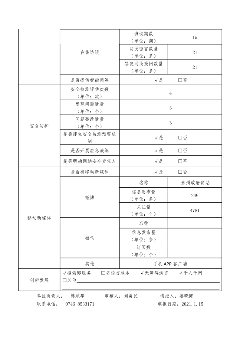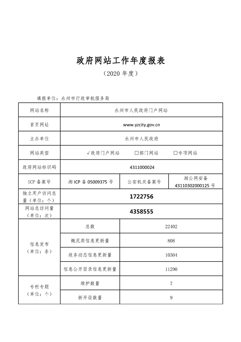 2020年永州市政府網(wǎng)站工作年度報(bào)表