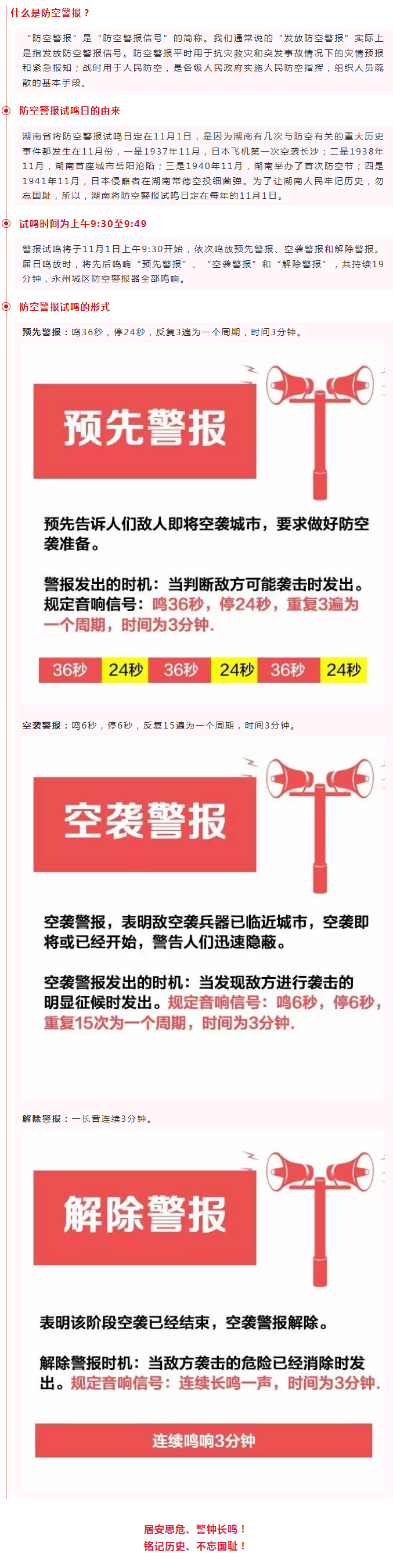 永州市國防動員辦公室關(guān)于開展防空警報試鳴活動的溫馨提醒