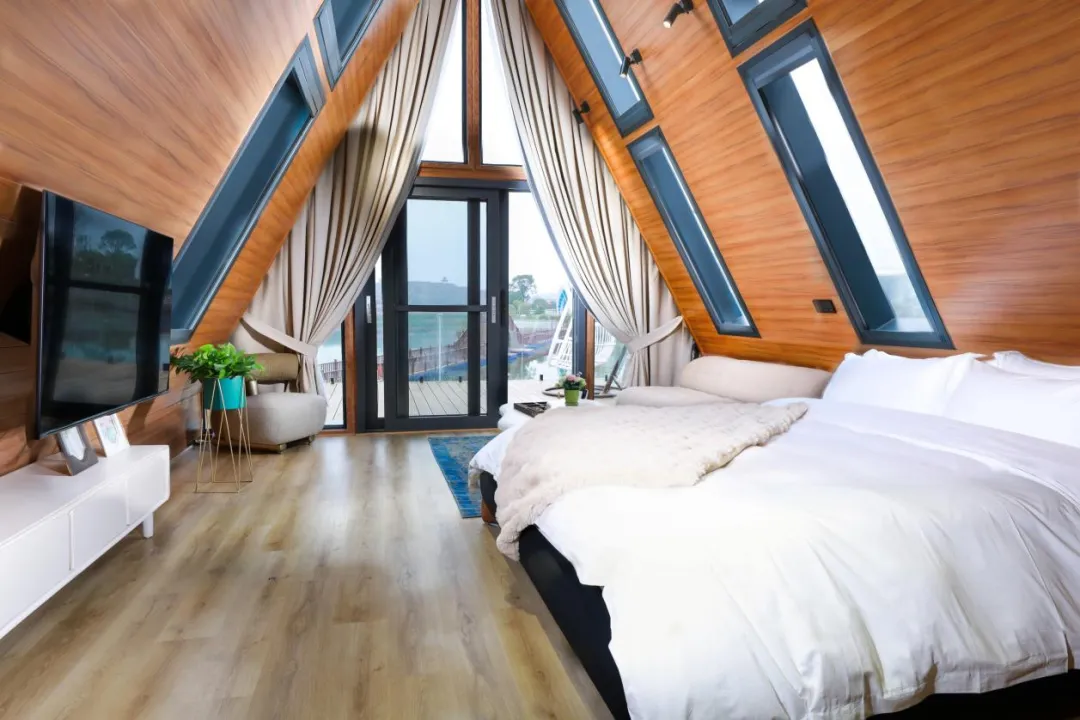 羨魚部落民宿位于雙牌縣4A景區(qū)花千谷·月湖景區(qū),一面湖畔一面花海,推開門270度一線江景,像童話世界一般。距離永州機場48公里、高速公路出口18公里,離縣城不到3公里。花千谷·月湖景區(qū)內(nèi)山谷連環(huán)、百花繁茂、白鷺翩翩,有游客餐飲中心、慢時空茶吧、咖啡館、小酒吧、燒烤園、羨魚部落民宿、單軌滑車、兒童游樂園、9D影劇院、魚樂園等消費游玩處所,提供親子活動、研學旅游、婚紗攝影、自然音樂會、團隊建設、各類主題活動、大型戶外活動等各類服務。羨魚部落民宿目前有6棟民宿11個床位,A-C棟小身材、大空間,閣樓的設計增加了木屋的趣味性,晚上躺在床上可仰望星空;D至F棟帶花海庭院,每棟花卉種植不同,晚上一面看江、一面賞花觀星空,逍遙又自在。