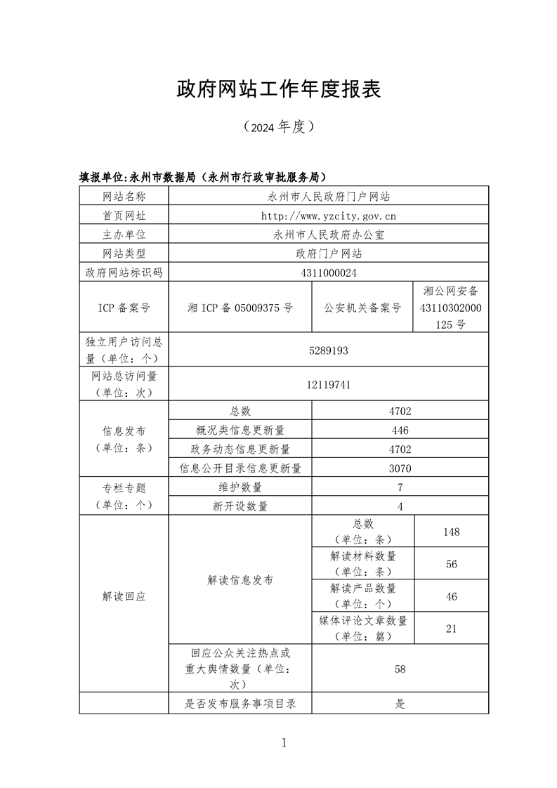 2024年永州市政府網站工作年度報表