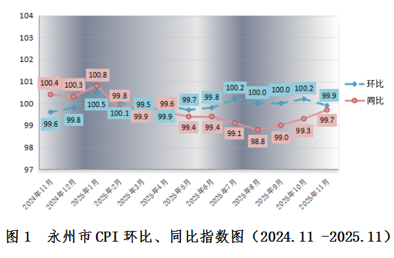 2025年11月永州市CPI同比下跌0.3%