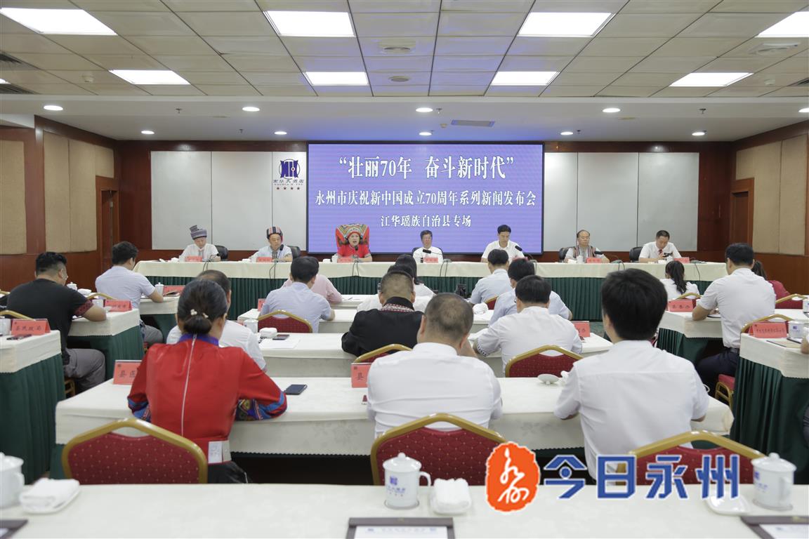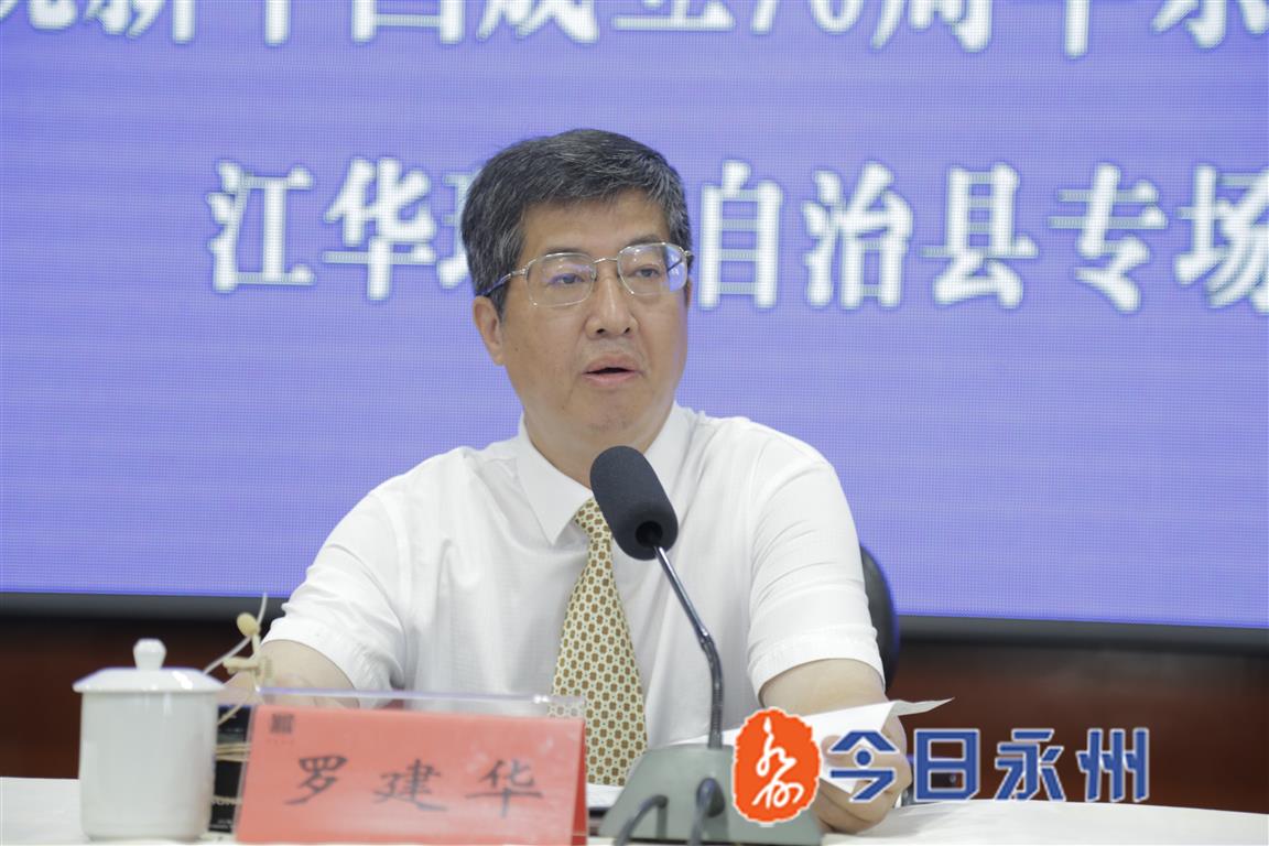 永州新聞網訊(記者 歐宇馨 謝思佳 何宇翔)9月23日上午,永州市“壯麗70年·奮斗新時代”系列新聞發布會舉行江華瑤族自治縣專場,展示70年來江華瑤族自治縣經濟社會發展情況。市委常委、江華瑤族自治縣委書記羅建華發布新聞。縣領導龍飛鳳、黃志堅、陳槐權、張恒、李華林以及相關部門負責人分別就民族團結進步、移民安置、生態環境保護、文明城市創建、園區建設、人居環境整治、民族教育等問題答記者問。