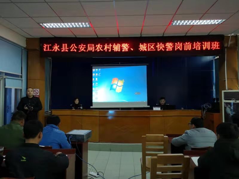 (2019年,江永縣公安局召開農(nóng)村輔警、城區(qū)快警崗前培訓班現(xiàn)場。)