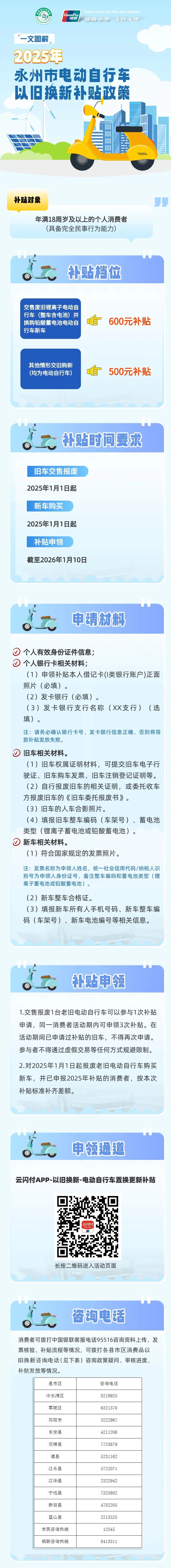 一文圖解丨2025年永州市電動自行車以舊換新補貼政策
