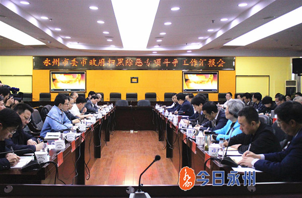 嚴華在匯報中指出,全市要始終堅持以習近平總書記關于掃黑除惡重要論述為指引,在省委省政府的堅強領導下,圍繞掃黑除惡工作重點,全力推動掃黑除惡專項斗爭向縱深發展。永州市各級黨委、政府堅決履行掃黑除惡主體責任和第一責任,突出政治站位,樹牢“四個意識”、堅定“四個自信”、堅決做到“兩個維護”,做好督導配合;突出依法嚴懲,進一步健全機制,規范司法執法行為,提高辦案時效和證據質量,組織專門力量抓好線索的核查,提升打擊效果;突出深挖徹查,建立同步辦案機制,確保紀法銜接,大力摧“網”打“傘”;突出組織建設,持續整頓軟弱渙散基層黨組織,進一步夯實基層基礎,加強源頭防范和宣傳發動,打好人民戰爭。