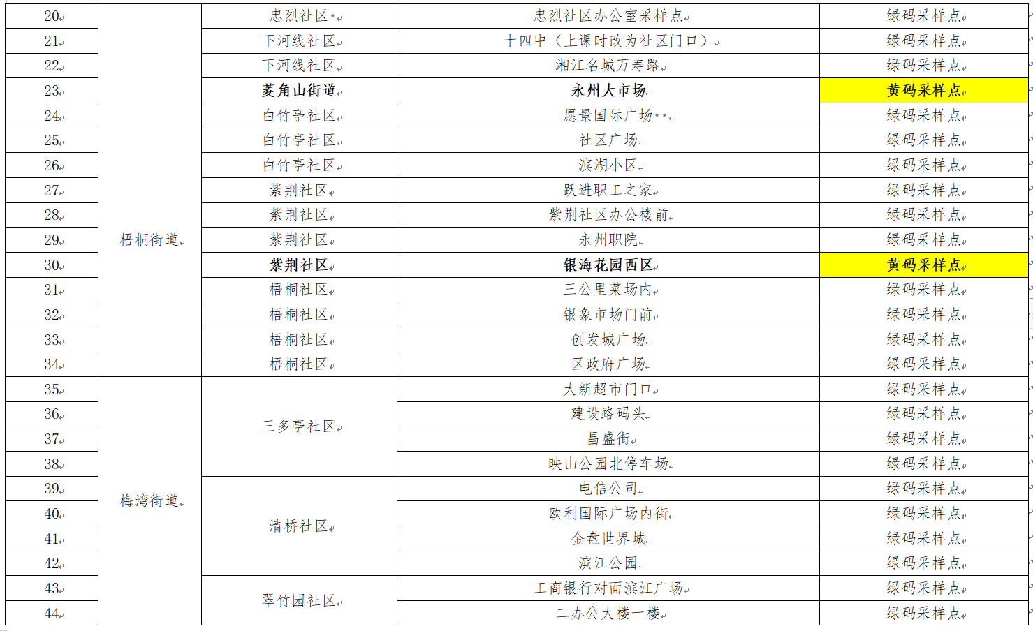 鳳凰街道、梧桐街道、珊瑚街道(城區)、楊家橋街道、菱角山街道、曲河街道、梅灣街道、肖家園街道、永州市經開區仁灣街道(采樣點詳見附表)。