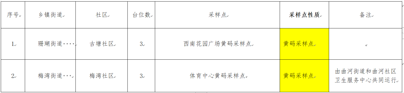 2、黃碼人員請到指定的黃碼檢測點(diǎn)進(jìn)行核酸檢測(詳見附表2)。