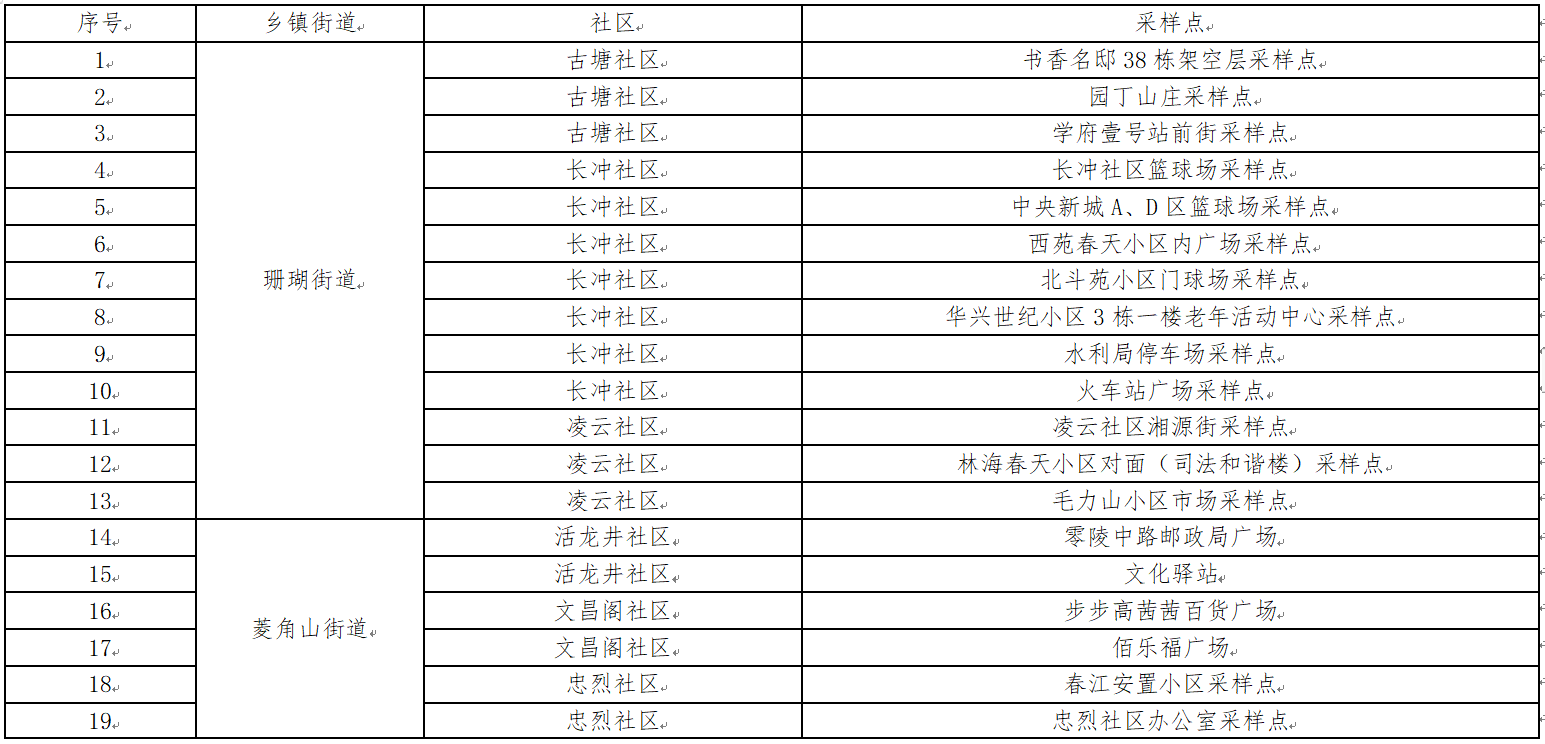 主城區(qū)河西片區(qū)核酸檢測篩查采樣點(diǎn)安排表