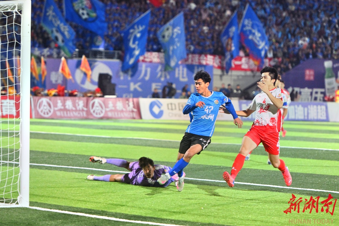 “湘超”永州隊打破長沙隊“零失球”金身。郭立亮 攝