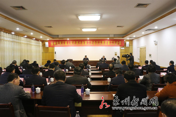 永州新聞網(wǎng)訊(記者 唐波濤) 1月16日上午,永州市第五屆人民代表大會(huì)第三次會(huì)議主席團(tuán)召開(kāi)第三次會(huì)議,市委書(shū)記、市人大常委會(huì)主任李暉,市委常委、組織部長(zhǎng)吳志雄出席,市人大常委會(huì)副主任袁火林主持。