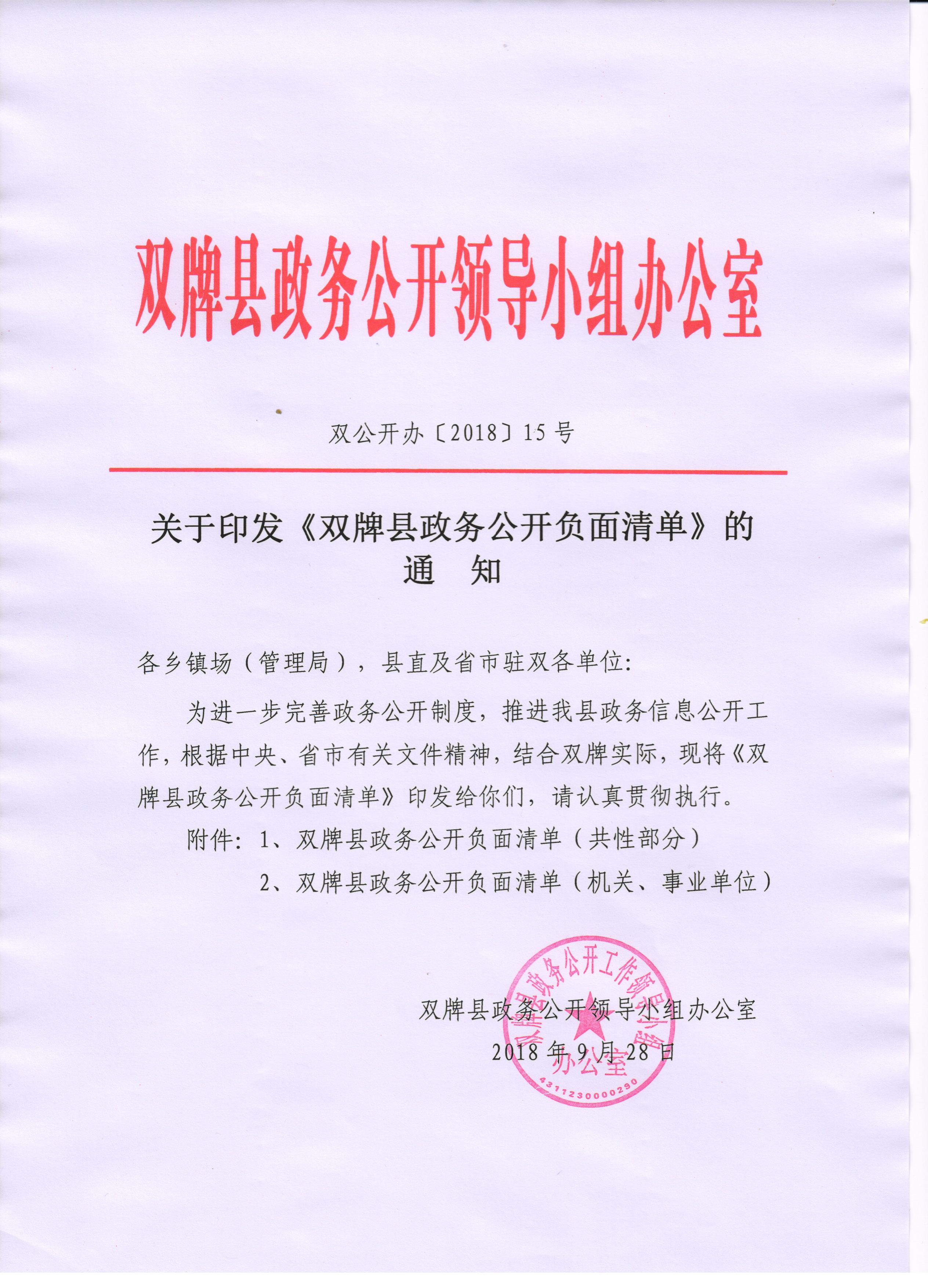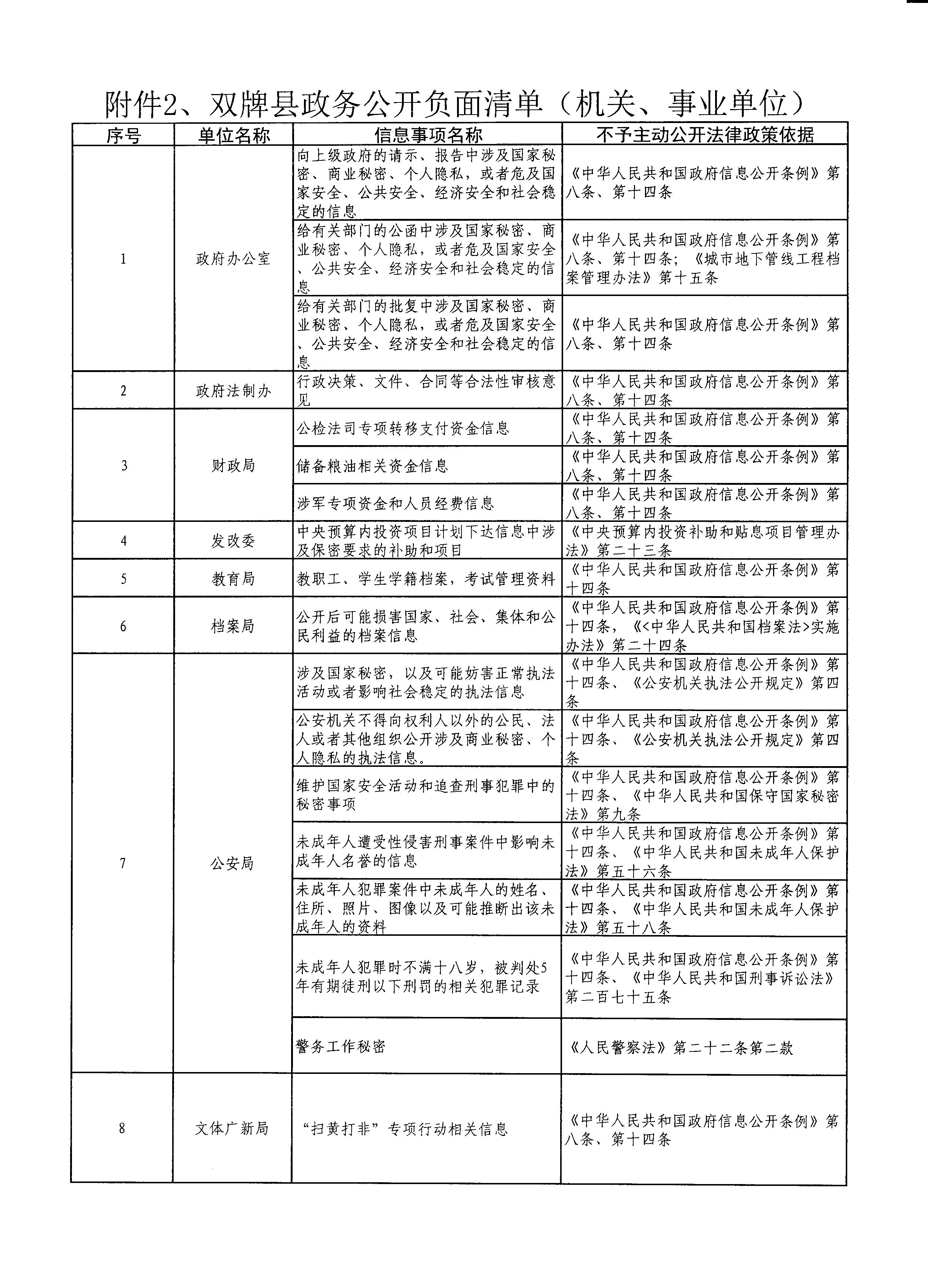 雙牌縣政務公開負面清單