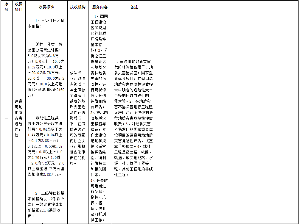六、國(guó)土資源系統(tǒng)服務(wù)性收費(fèi)降低20%后的各項(xiàng)具體收費(fèi)標(biāo)準(zhǔn)如下: