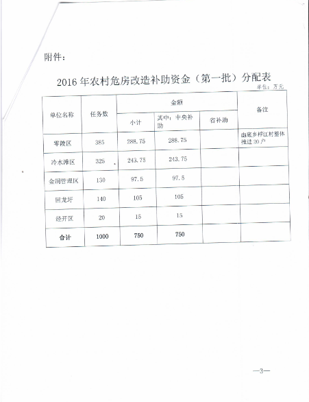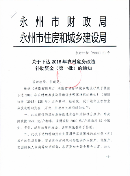 永州市財政局關于下達2016年農村危房改造補助資金(第一批)的通知
