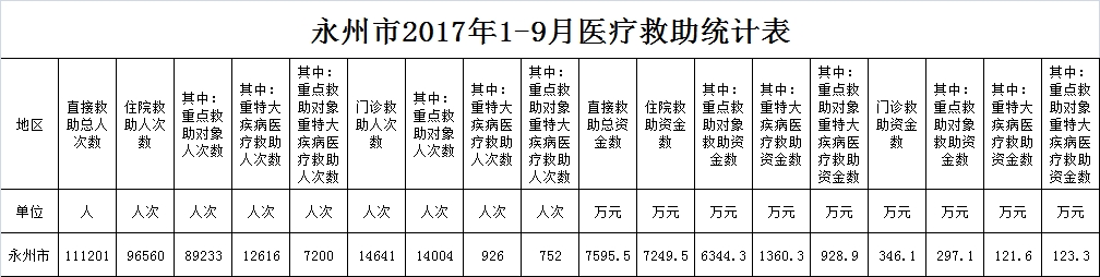 永州市2017年前三季度醫(yī)療救助統(tǒng)計表